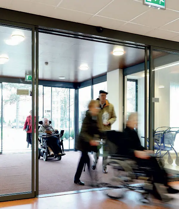 An added benefit of automatic doors is improved temperature control for areas of regular pedestrian access.